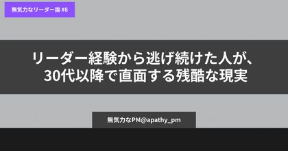 リーダー経験から逃げ続けた人が、30代以降で直面する残酷な現実【無気力なリーダー論 #8】|無気力なPM