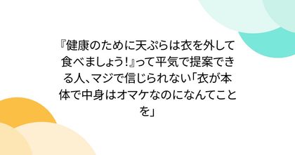 『健康のために天ぷらは衣を外して食べましょう!』って平気で提案できる人、マジで信じられない「衣が本体で中身はオマケなのになんてことを」