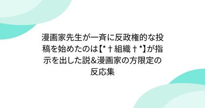 漫画家先生が一斉に反政権的な投稿を始めたのは【*†組織†*】が指示を出した説&漫画家の方限定の反応集