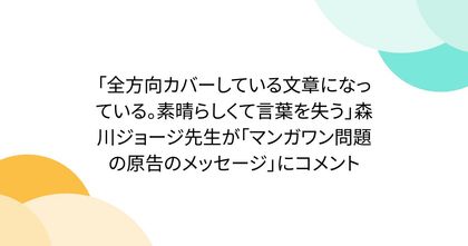 「全方向カバーしている文章になっている。素晴らしくて言葉を失う」森川ジョージ先生が「マンガワン問題の原告のメッセージ」にコメント