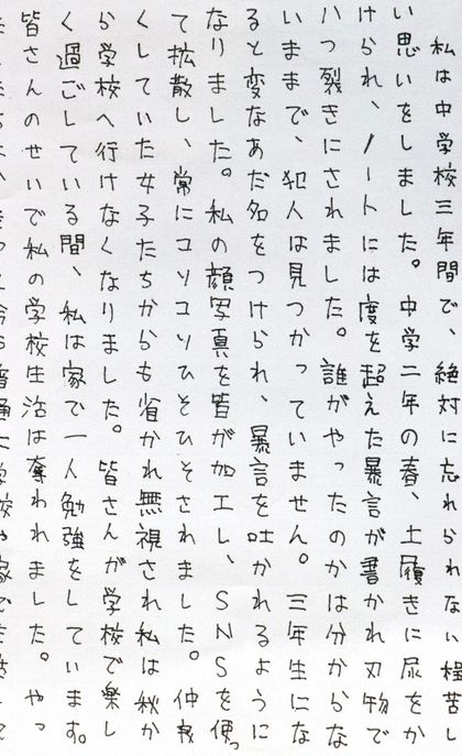 いじめ被害記した卒業文集、中学校長が書き直し要求「一つぐらいは」(毎日新聞) - Yahoo!ニュース