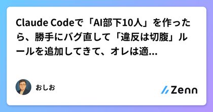 Claude Codeで「AI部下10人」を作ったら、勝手にバグ直して「違反は切腹」ルールを追加してきて、オレは適当にしゃべるだけになった