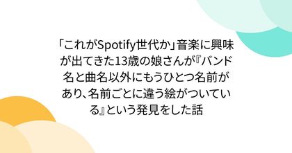 「これがSpotify世代か」音楽に興味が出てきた13歳の娘さんが『バンド名と曲名以外にもうひとつ名前があり、名前ごとに違う絵がついている』という発見をした話
