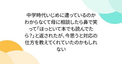 中学時代いじめに遭っているのかわからなくて母に相談したら鼻で笑って「ほっといて本でも読んでたら?」と返されたが、今思うと対応の仕方を教えてくれていたのかもしれない
