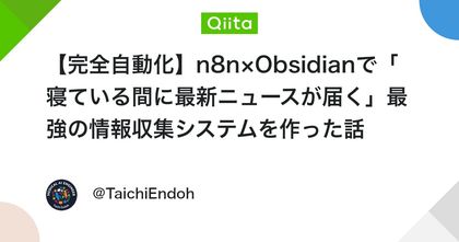 【完全自動化】n8n×Obsidianで「寝ている間に最新ニュースが届く」最強の情報収集システムを作った話 - Qiita