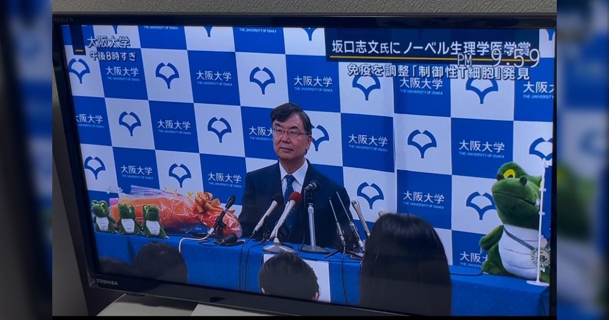 ノーベル生理学賞の会見に映るワニのぬいぐるみが気になると話題に→大阪大学の公式キャラ“ワニ博士”でした「マスコットキャラなのに経歴が凄い」「インスタ可愛いすぎ」