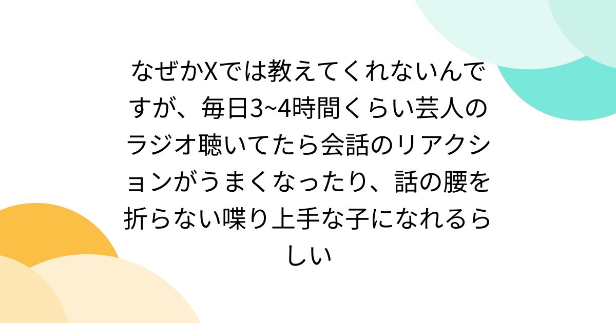 なぜかXでは教えてくれないんですが、毎日3~4時間くらい芸人のラジオ聴いてたら会話のリアクションがうまくなったり、話の腰を折らない喋り上手な子になれるらしい
