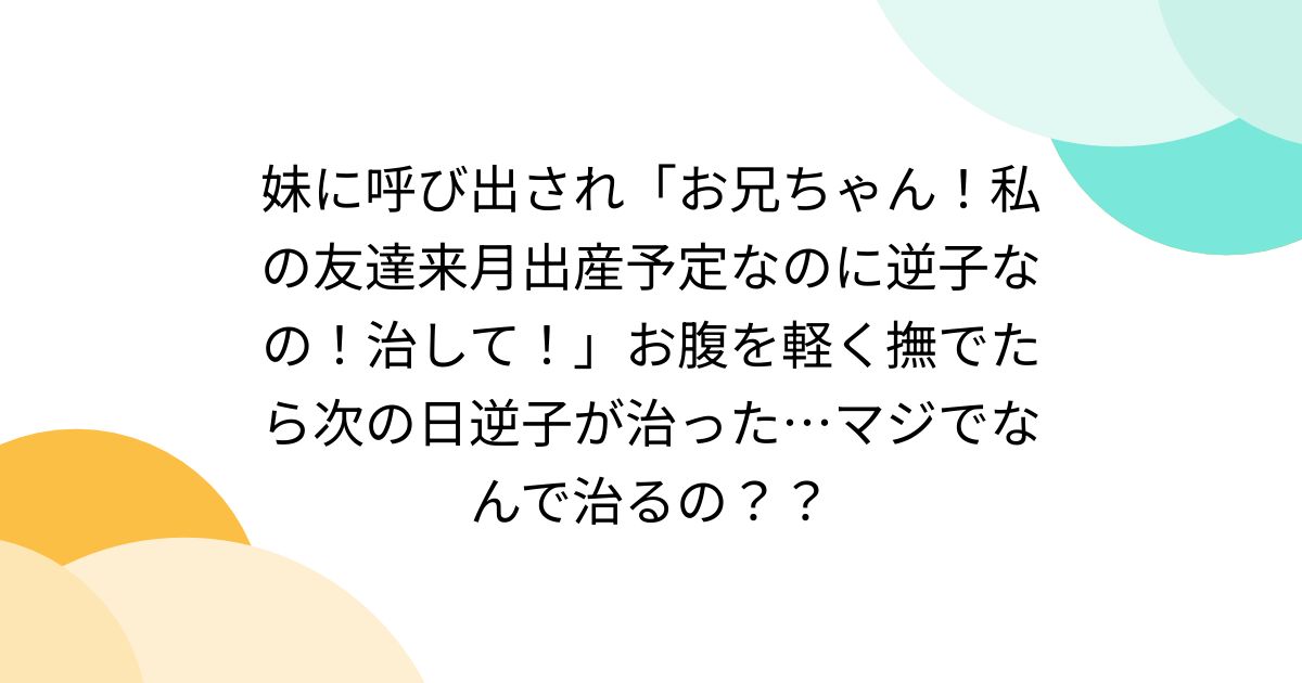妹に呼び出され「お兄ちゃん!私の友達来月出産予定なのに逆子なの!治して!」お腹を軽く撫でたら次の日逆子が治った…マジでなんで治るの??