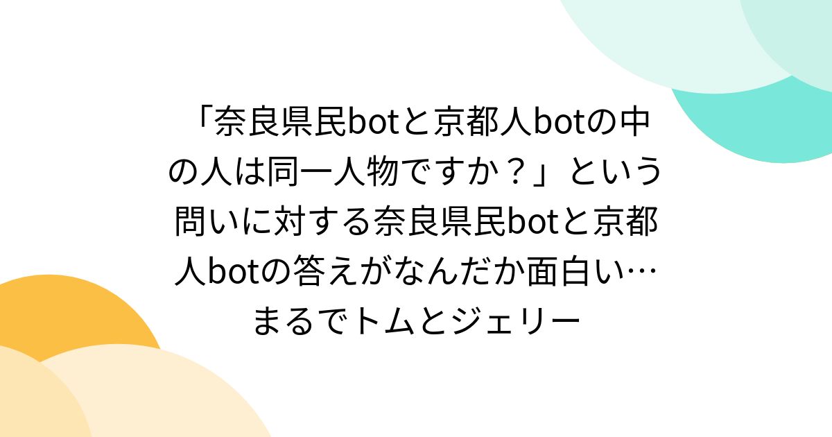 「奈良県民botと京都人botの中の人は同一人物ですか?」という問いに対する奈良県民botと京都人botの答えがなんだか面白い…まるでトムとジェリー